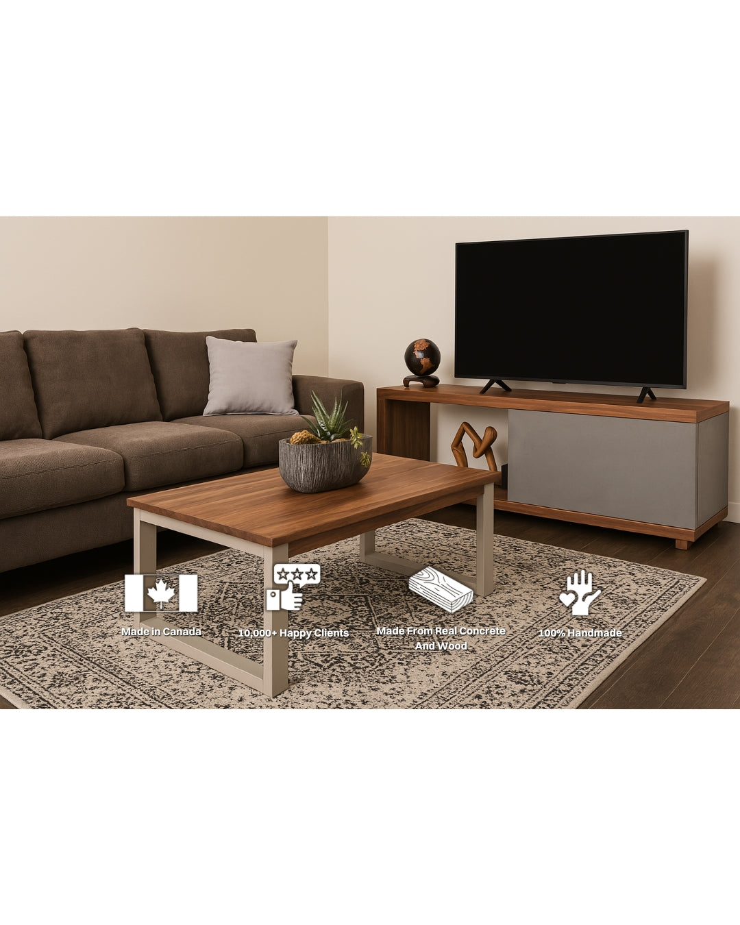 Every Curly Woods piece is thoughtfully designed, iterated, and handcrafted in-house. We obsess over detail — from the contrast of wood grain and concrete to the way each element feels in your home.