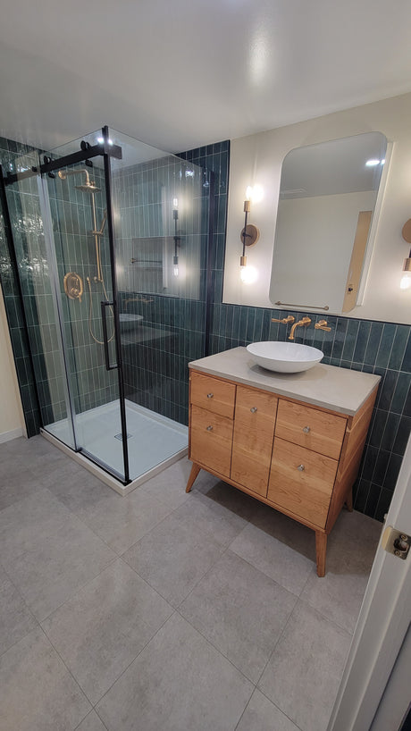 Personalizable Bathroom Vanity Concrete Walnut Solid Wood Drawers