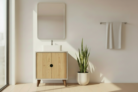 Hard Wood and Concrete Top Custom Bathroom Vanity