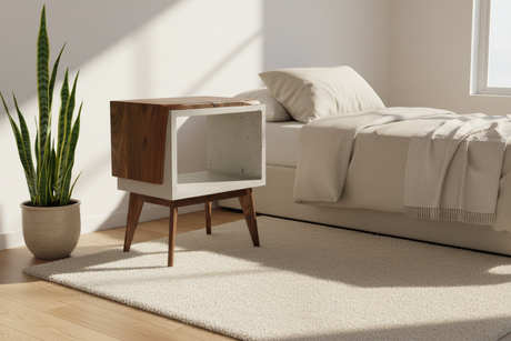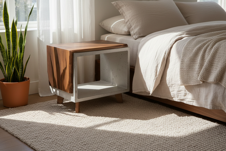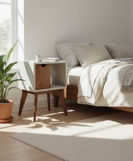 Half'n Half - Concrete & Solid Black Walnut Drawer Mid-Century Nightstand Bed Side Table