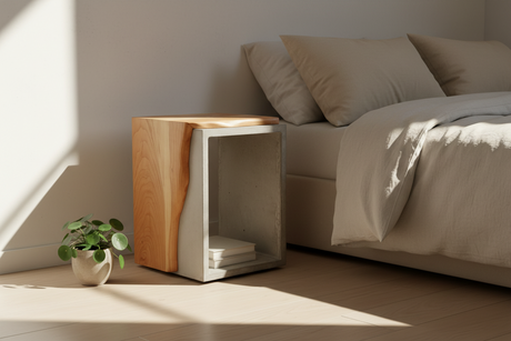 Classic Edge Light - Concrete Box & Live Edge Wood Top / Side Drawer Nightstand