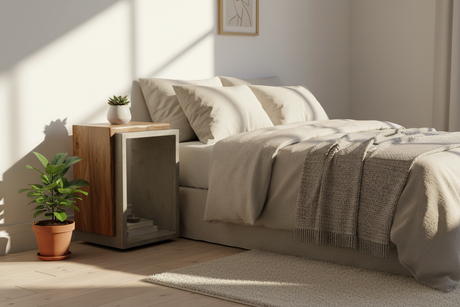 The Base - Concrete Cube & Solid Walnut Wood Base and Drawer Nightstand