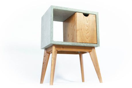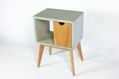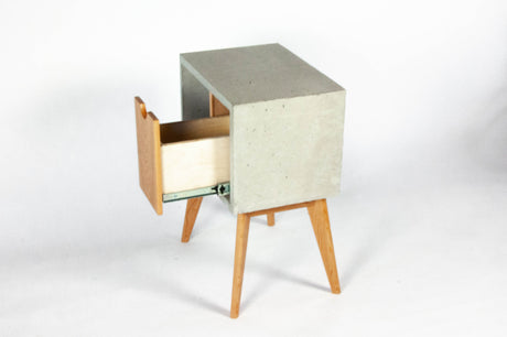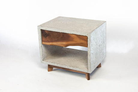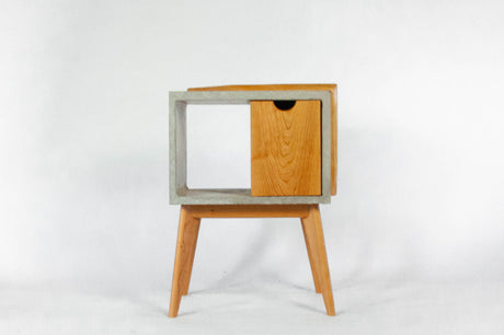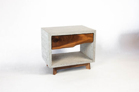Half'n Half - Concrete & Cherry Wood Drawer Mid-Century Nightstand