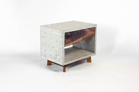 Half'n Half - Concrete & Solid Black Walnut Drawer Mid-Century Nightstand Bed Side Table
