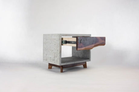 Classic - Concrete and Live Edge Black Walnut Solid Wood Drawer Nightstand Side Table