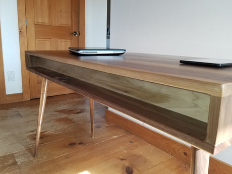 Mid-century Modern Black Walnut Office Desk with Concrete Drawers