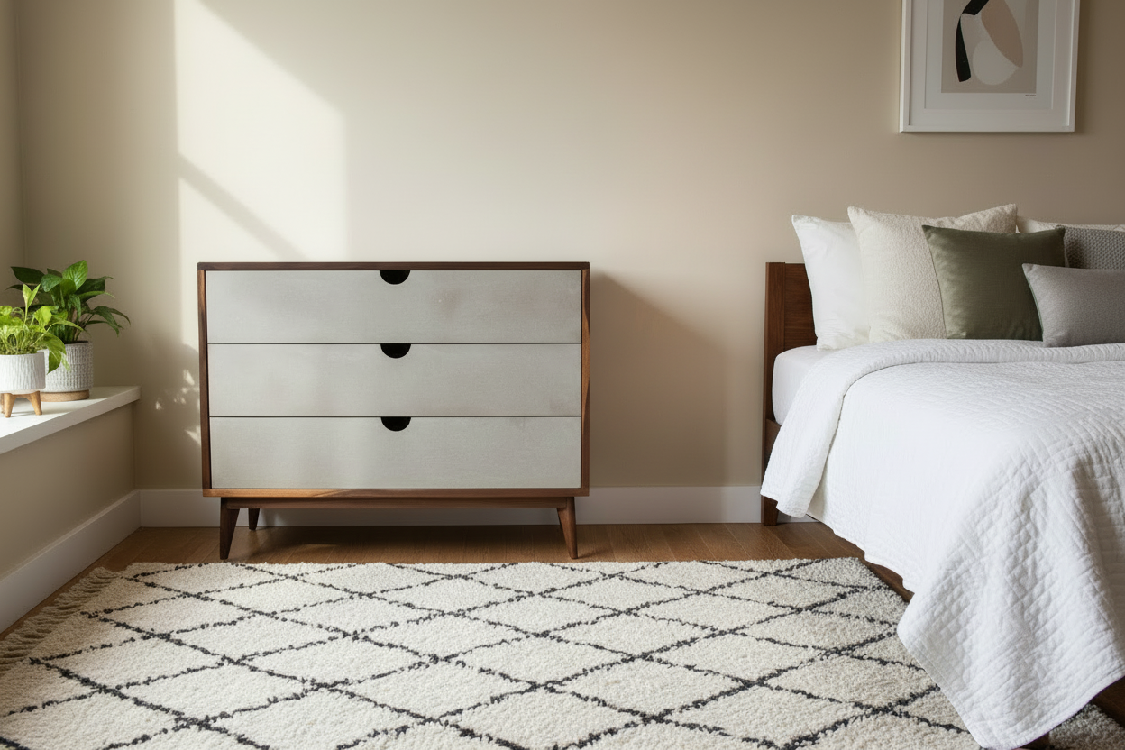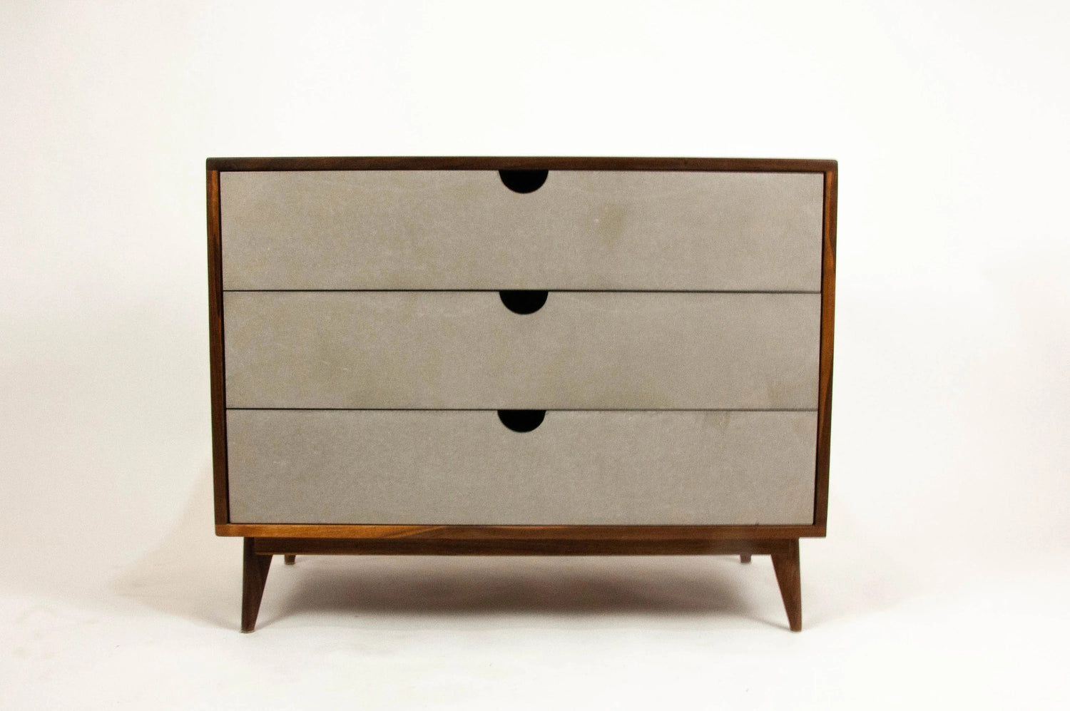 Theo - Mid-century Modern Black Walnut Dresser with Concrete Drawers