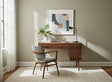 This handmade office desk, inspired by mid-century modern design, blends aesthetic appeal and functionality. Its geometric legs create a striking silhouette, while the combination of solid black walnut and concrete drawer facings adds sophistication.