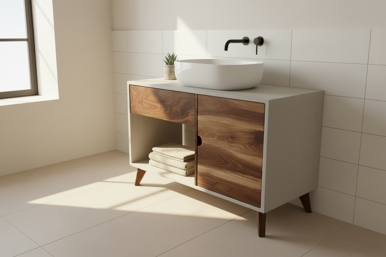 Handcrafted Concrete and Custom Wood Bathroom Vanity - Tailored to Perfection
