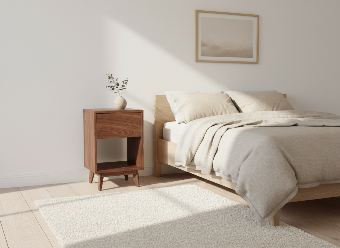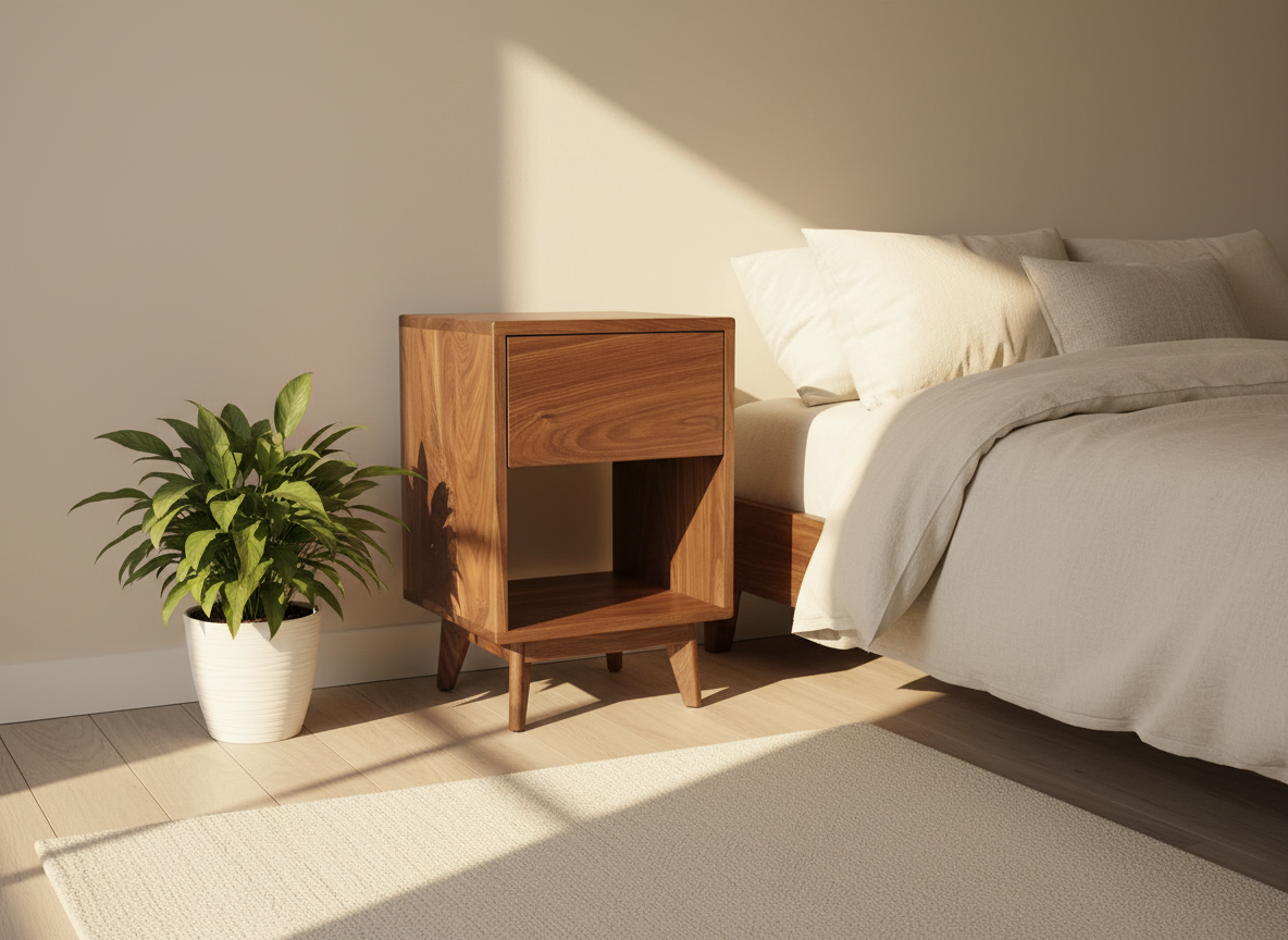 Bois Classique - Table de nuit ou table d'appoint à tiroir droit en bois massif