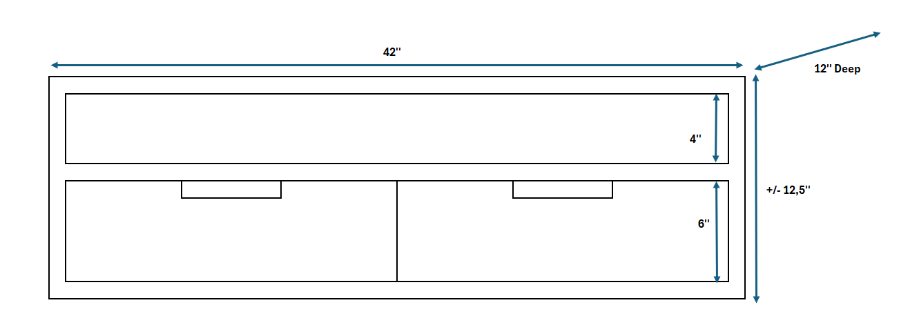 - Dimensions: 42" L × 12" D × 12.5" H